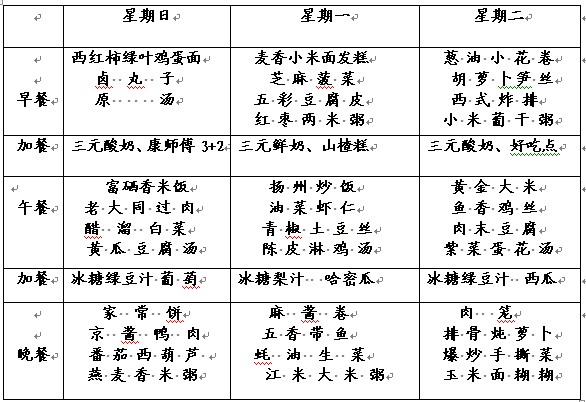 2014年9月28日—30日幼儿食谱——大同泰昌国际园