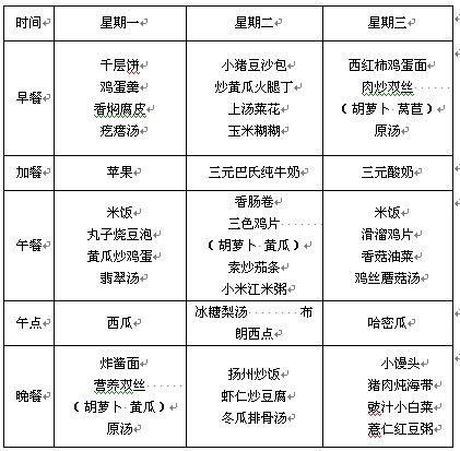 2014年9月28—30日幼儿食谱——大同魏都新城一园