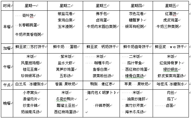 2014年9月22日—26日幼儿食谱——北京西马园