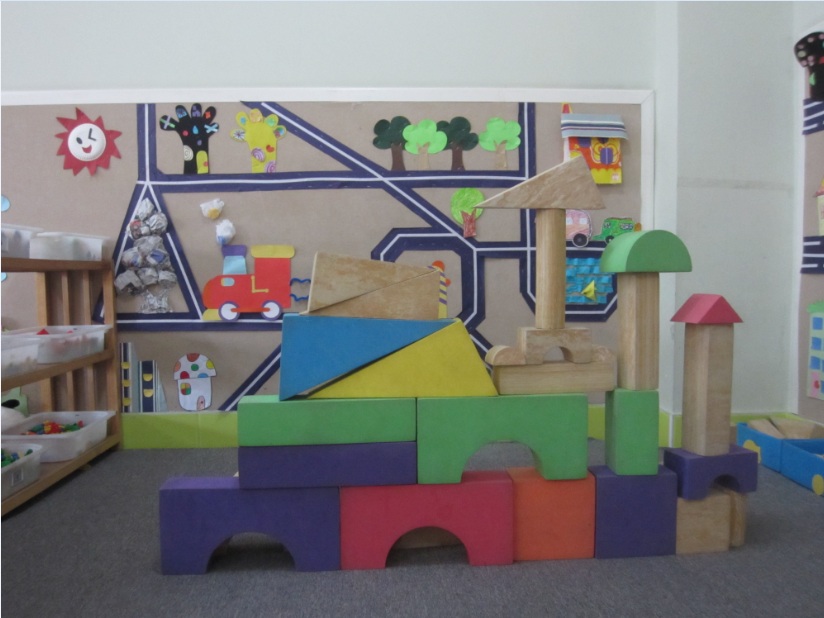 (教室生活区一角) (教室建构区一角)