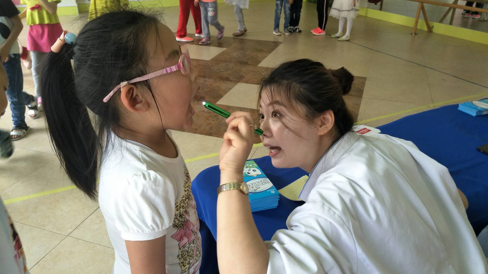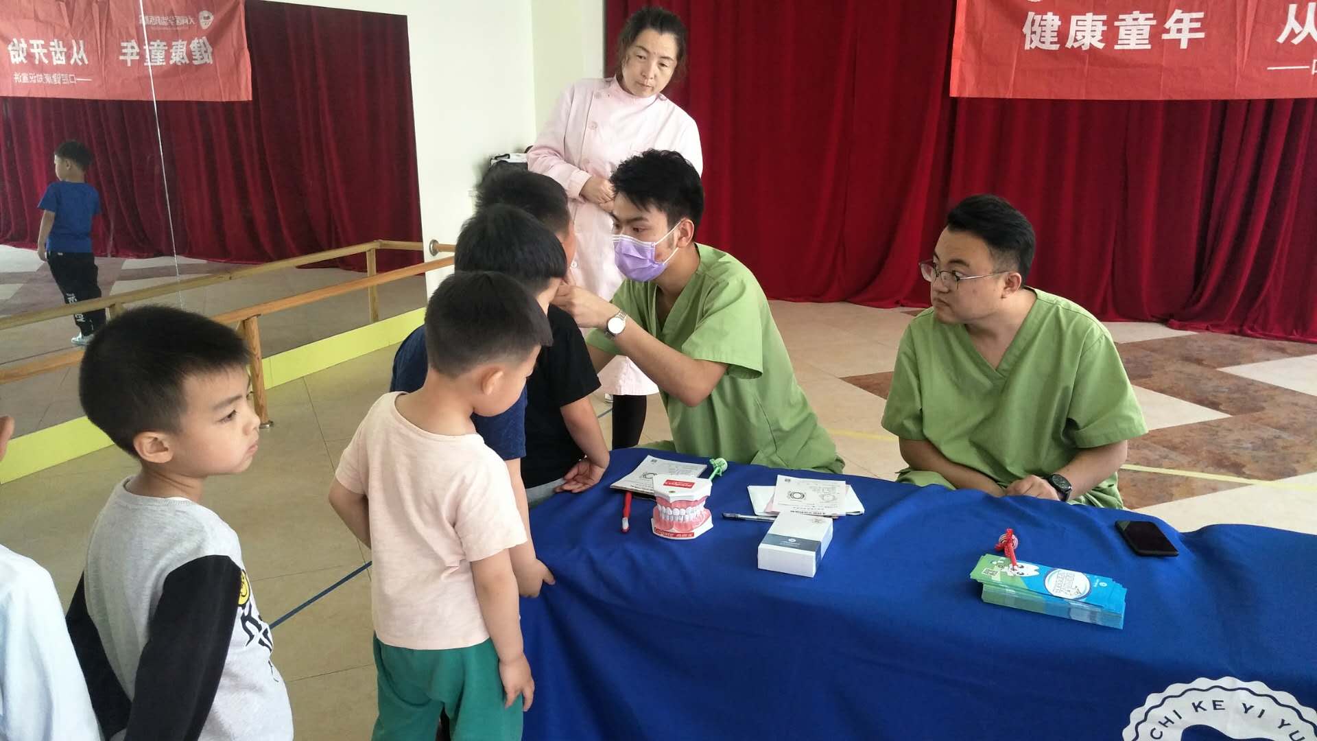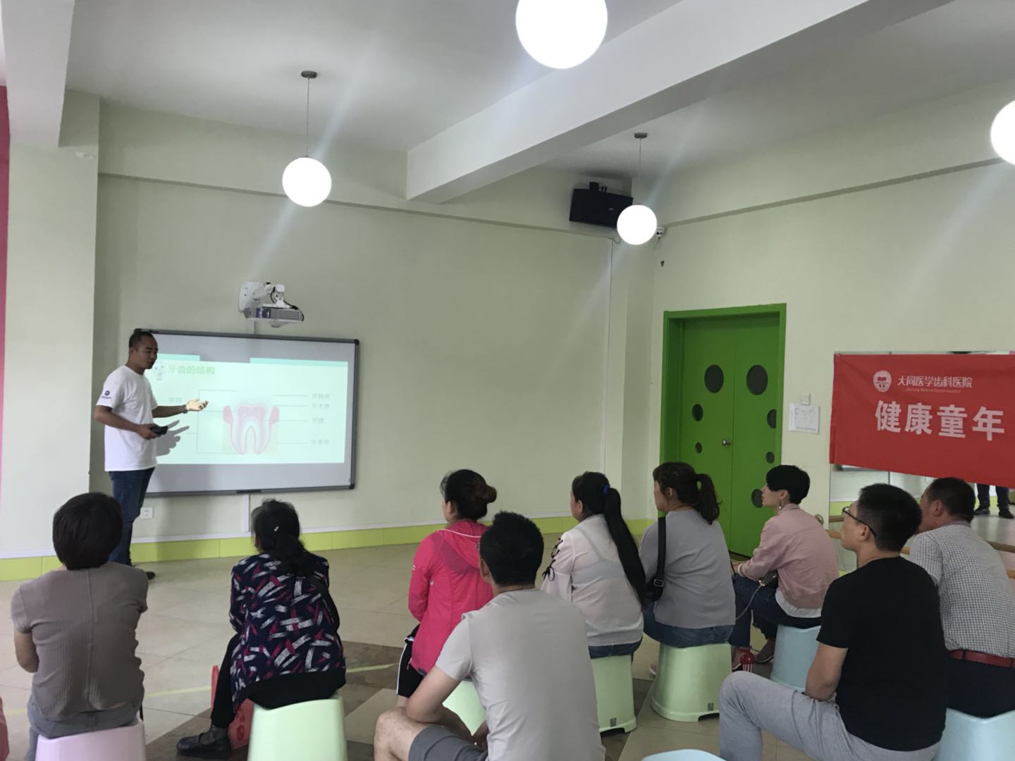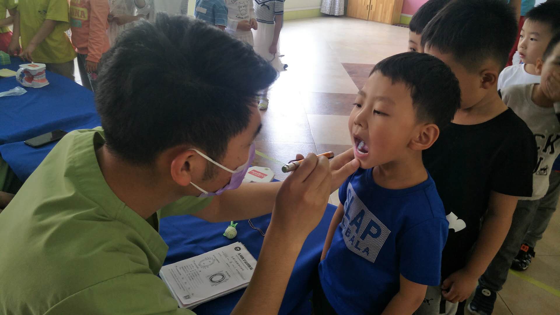 在这周,布朗幼儿园大同魏都D园里来了一群“护牙使者”,他们是来自于大同市医学齿科医院的叔叔阿姨们,肩负护牙使命,为小朋友公益检查牙齿,同时也为幼儿园的家长朋友及老师们带来护牙、爱牙的科学知识,真正全园实现——健康生活 从齿开始。