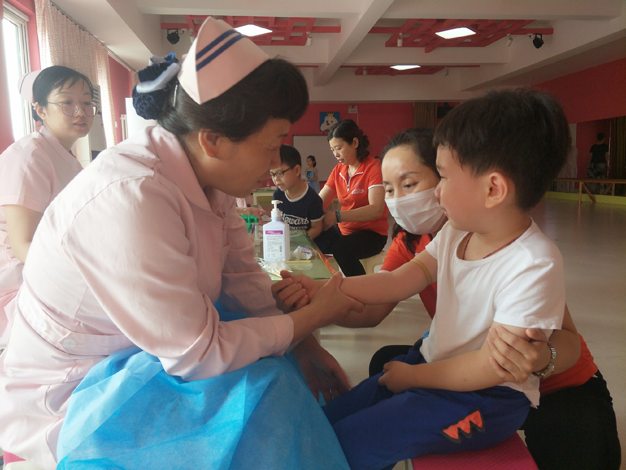 早上9点,在保健医的精心准备和老师的耐心引导下,孩子们手拿体检单排好整齐的队伍,开始体检啦!医生们在各班老师的配合下,分工明确、态度温和,认真、细致地给每个孩子做了全面检查,并对每一位幼儿的检查都做了详细的记录;我们的班级老师和保育妈妈边有序地组织体检,边用鼓励、表扬的方式积极营造轻松的氛围。孩子们都表现得非常勇敢,积极配合医生,井然有序地逐项体检,顺利完成了本次的体检任务。