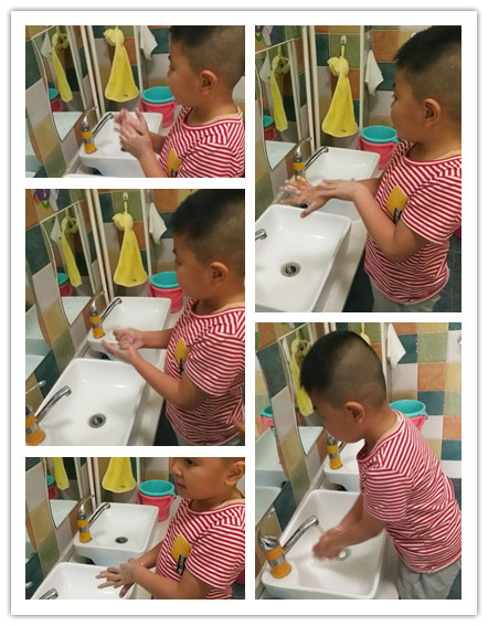 孩子们洗手后,进餐前,手是不可以接触任何物体的,老师们细心地为孩子们摆放好椅子,孩子们会从侧方直接入座,不再用手接触椅子及桌面。