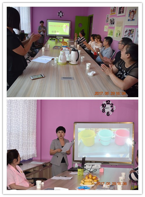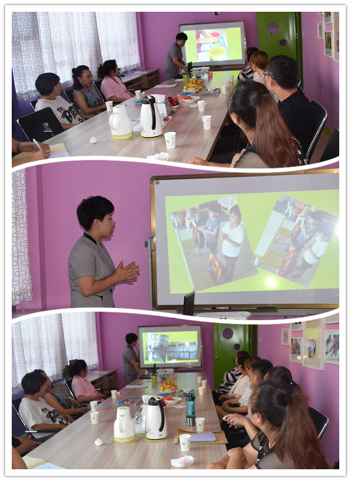 伙委会上,后勤主任冯老师针对幼儿食物来源的安全性,包括采买的流程、食品加工流程、对厨师个人卫生及厨房卫生的严格要求、幼儿餐具的使用消毒等各方面都做了全面、细致的讲解与介绍,同时请家长观看了PPT展示。