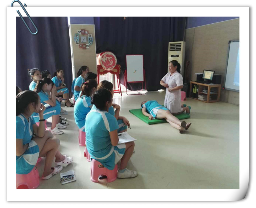 保健医从幼儿意外伤害的种类、致伤原因、预防要点、急救原则等方面分别做了详细的讲解,并邀请一位老师扮演受伤的小朋友,现场演示了急救措施实施方法。最后,保健医对全体老师们学习掌握情况进行了测试,所有老师都通过了测试,掌握了正确的急救方法。