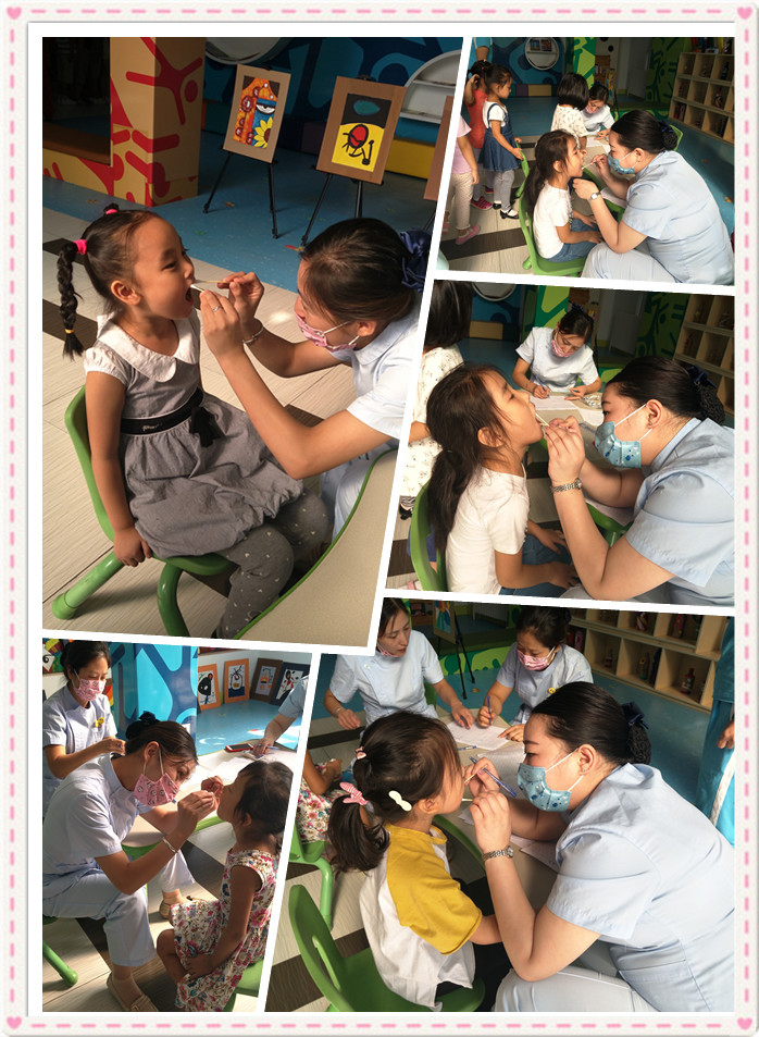 随后,医生们逐一地给孩子们进行了口腔检查,牙齿棒棒的小朋友得到了表扬,有蛀牙的小朋友也被医生提醒要及时去医院治疗。孩子们安静有序地配合着医生的检查,勇敢的表现值得嘉许!