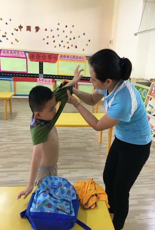 不管是集体教学活动、游戏还是户外活动时,湛莉总会有意识地让超超参与进来,让他把自己听过的故事、看过的动画片,试着用自己的语言讲给其他小朋友们听。尽管目前他有时会前言不搭后语,但他变得勇敢了!