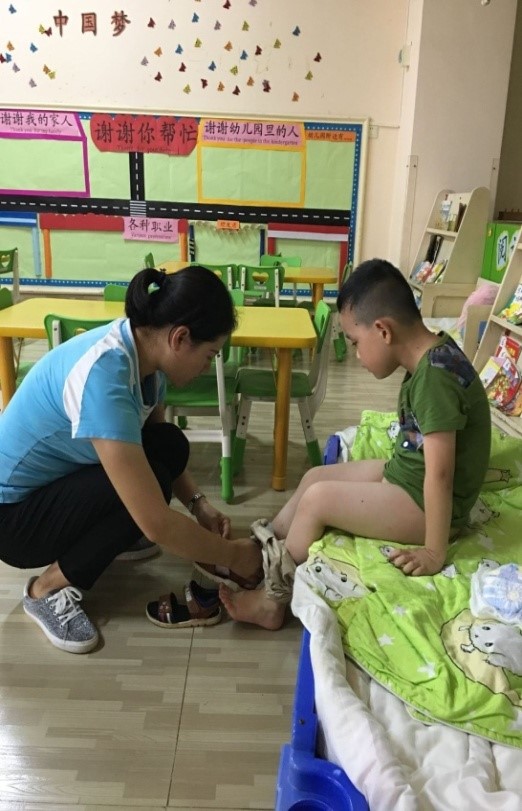 在湛莉的细心照顾下,超超的睡眠习惯也大有改善,从每天需要老师拍背入睡,到现在自己能安静入睡。虽然现在还每天还需要包着尿布,但是湛莉坚信,在老师们的耐心培养下,他总有一天能戒掉尿布,像其他孩子一样正常入睡!