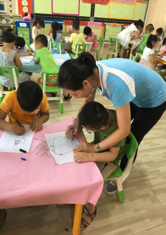 为了让超超能尽快融入到日常的教育教学及游戏活动中,湛莉也花费了大量的时间去帮助他,引导他。刚开始时,他喜欢自己在地板上躺着玩耍或进入区角玩,活动中对谁都不理,好!湛莉尊重他的兴趣点,允许他自己在一边静静地看书或玩玩具,然后慢慢地就尝试着让他坐在她的身边,不喜欢可以允许他暂时离开。渐渐地超超坚持待在她身边的时间越来越长,最后就让他和他的姐姐坐在一起听课,直到现在他已完全融入到小朋友们中间。