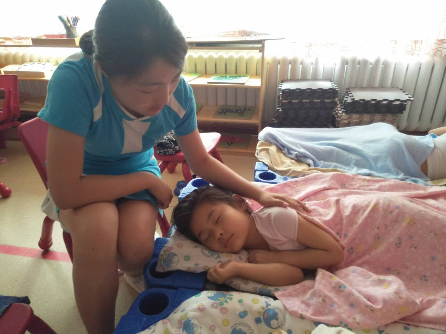 班上有个叫明明(为保护孩子隐私,文中均为化名)的小朋友不爱讲话,但特别好动,总不愿意坐在座位上,喜欢到处跑,一不留神就会找不到他。每当这时,曾宪露不管自己在忙什么,都会立刻放下手中的工作,马上找到他,并拉着他的小手叮嘱他不要乱跑,想要干什么要告诉老师。但明明总是不愿张口说出自己的想法,曾宪露只能时刻注意着他,生怕他再次离开她的视线。