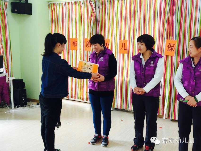 保育工作是幼儿园重要的工作之一。为切实加强幼儿园保育工作,有效提高保教人员的整体业务水平,给保育员提供了一个表现自我、展示自我的机会,2015年4月10日中午,布朗幼儿园举行了保育员技能技巧比赛活动。