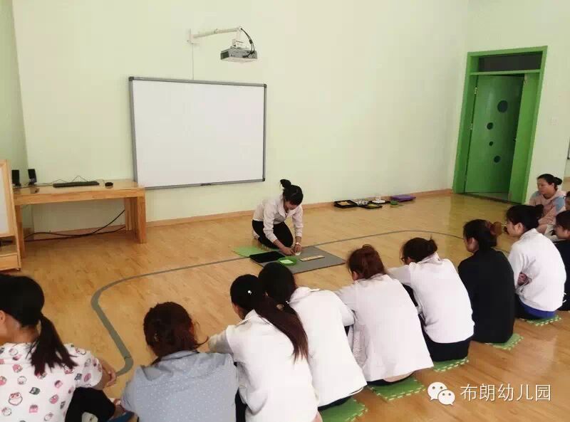 教师的专业化成长离不开先进的教育理念指导,而先进的教育理念是在不断阅读理论书籍、倾听理论讲座,和其他教师相互交流的过程中,逐渐形成的。教师在实践中运用各种教育理论,不断分析教育实践中出现的问题,与教师们相互交流评价反思,关注和分享别人的先进的教育经验,才能在实践过程中调整不适宜的行为,构建、扩展自身的教育经验,从而提升自己的专业化水平。为此,在周四中午的业务学习时间,老师们先进行了蒙氏区域活动的理论学习;在此基础上根据学到的理论知识结合本班幼儿的实际情况,自制蒙氏工作并进行分享;然后到罗伊班进行了蒙氏活动观摩。