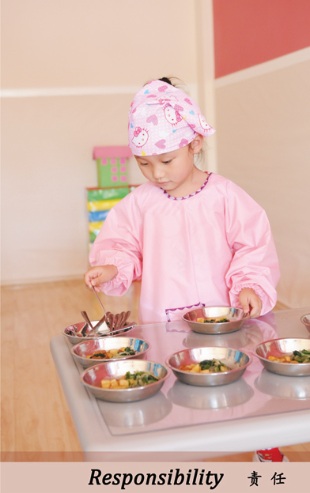 Develop 10 core attributes for the children:love,self-confidence,honesty,responsibility,joy,thinking,practice,creativity,nature and cooperation