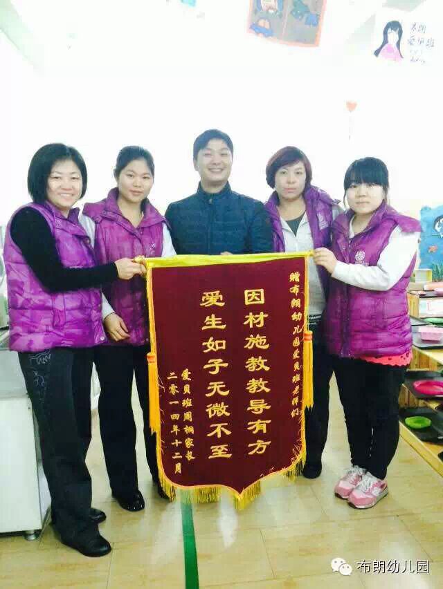 2014年12月30日,布朗幼儿园爱贝班收到周桐家长送来的锦旗。当老师接到锦旗的那一刻,感受到家长对我们工作的认可与嘉许,谢谢你们对幼儿园的认可,对老师的鼓励。在即将来到的2015年,我们会更加努力,将我们的爱,将我们的布朗精神传递下去。