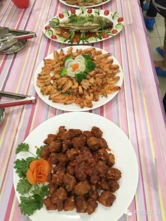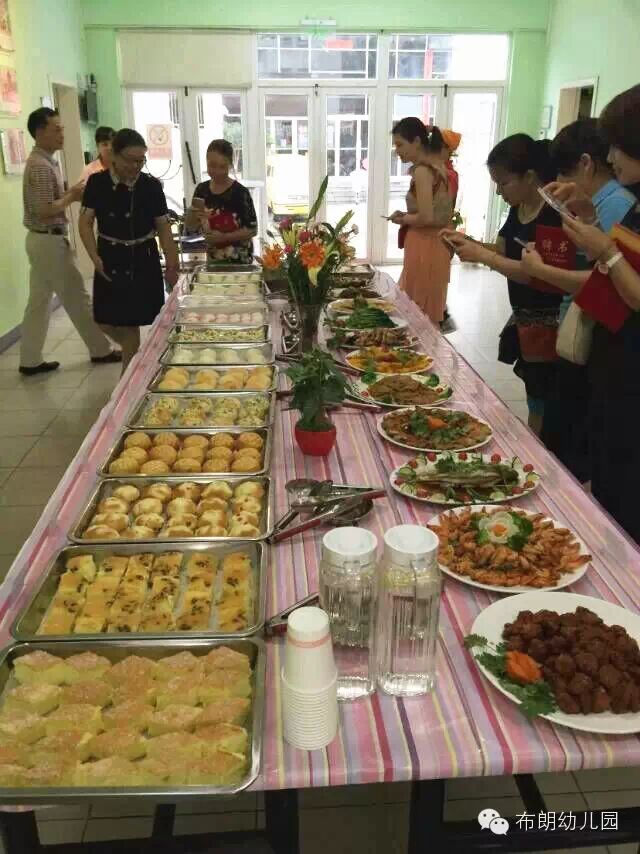 芦园长带领我们领略了各种中式菜品和面点甜点,看着这些色香味俱全的美食,已经把我们的味蕾充分调动起来了,都迫不及待的想要来一场舌尖与美食的甜密约会,品尝一下我们的宝宝每天吃的既卫生健康又美味营养的食物。各位家长们一边品尝着一边互相交流着,感叹着幼儿园的厨师手艺绝对可以和大酒店的厨师们相媲美,满满的感受到了幼儿园的专业、严谨和规范。同时,芦园长向家委员介绍了幼儿园的伙食,包括食物的采购(油是哪里买的,什么牌子都一一做了说明)、食物的制作、一周食谱的制定依据和流程、教职工和幼儿伙食分开安排等方面做了详细的介绍,也详细回答了家委会提出的问题,并介绍了各位辛勤付出的后勤人员,家委员各位成员忍不住要对各位辛勤付出的老师妈妈们和辛苦在厨房的厨师阿姨们点赞。对幼儿园的工作给予了高度的评价:好羡慕我们的孩子可以吃到这么美味的食物,孩子们真有口福啊!