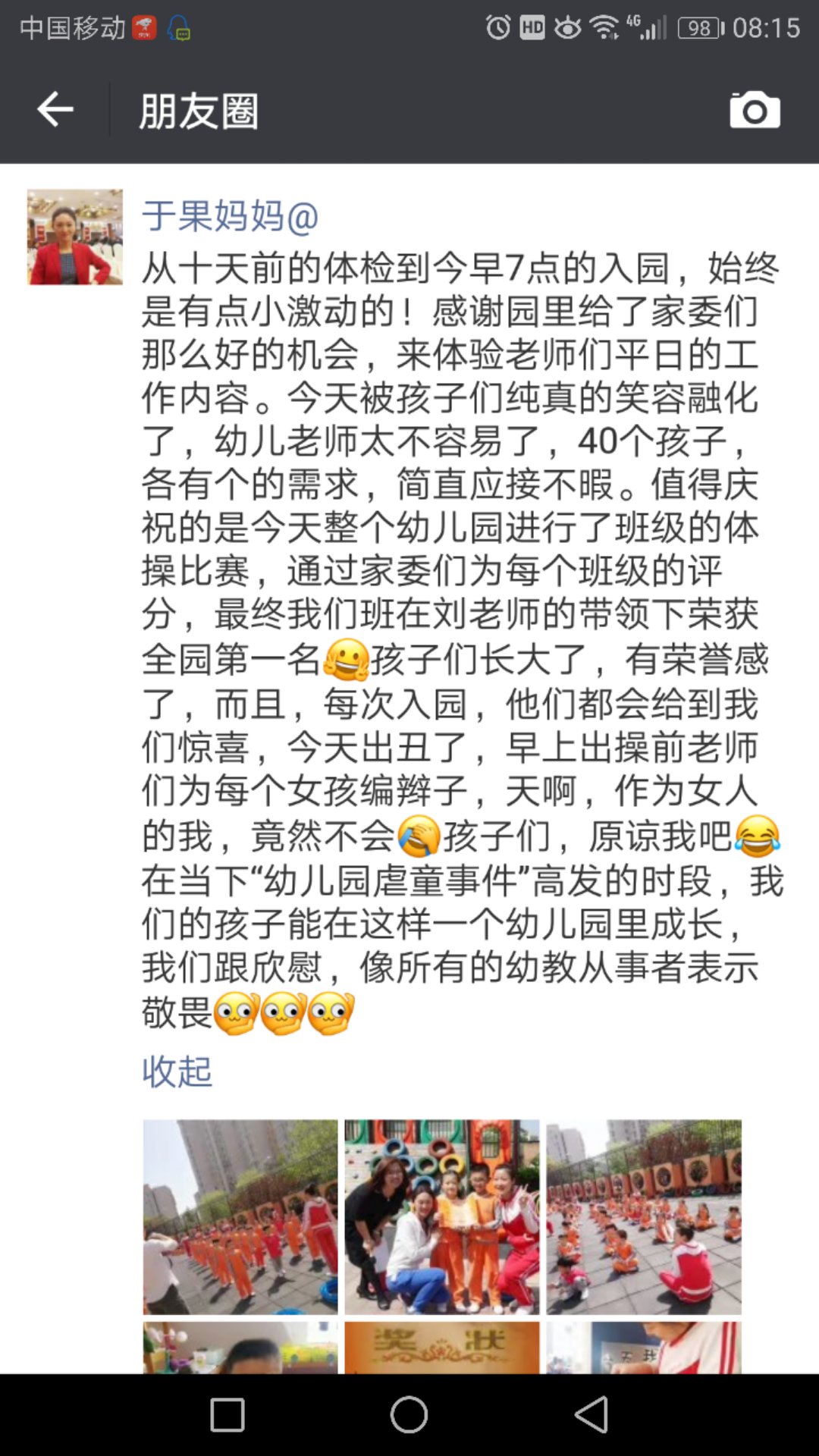 通过半日的跟班体验,家委们对于老师们的工作有了更多的认识与理解,并深切的感受到老师们的日常教育和保育工作的不容易和辛苦,家长委们纷纷表示对老师的感谢和理解,今后会更加幼儿园及老师们的工作。