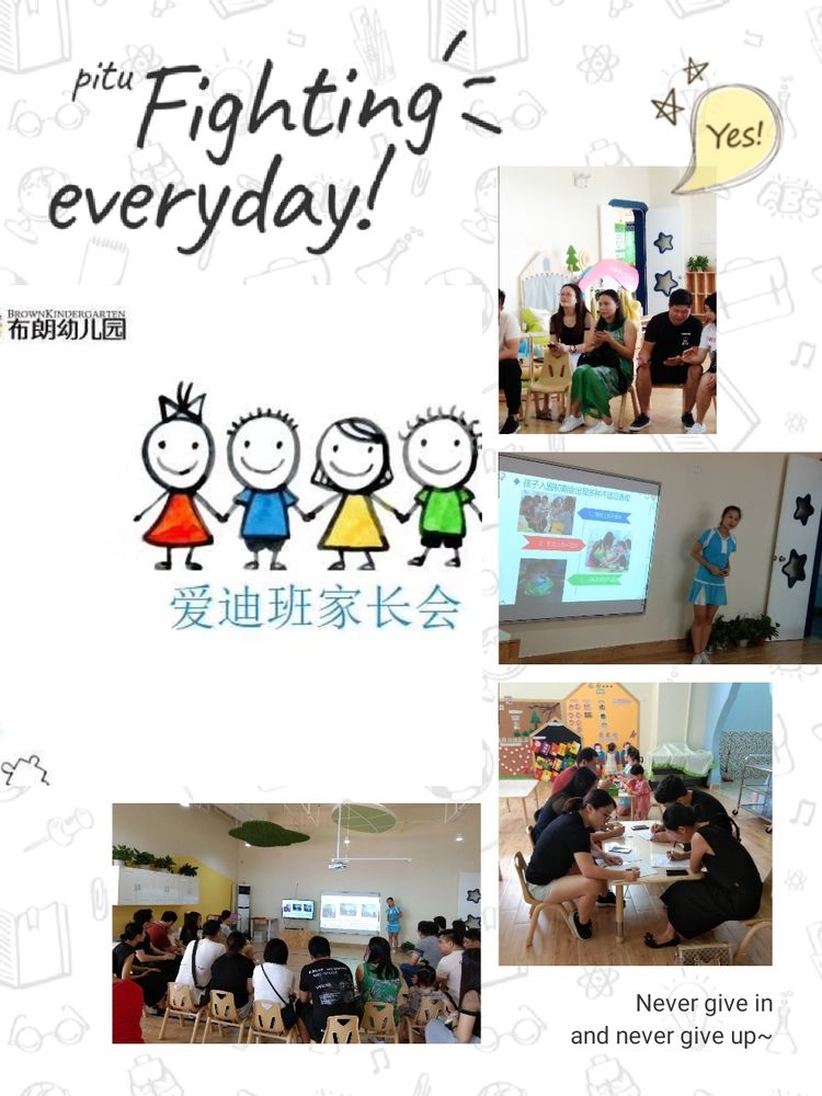 最后,各班家长跟随班级老师回到班里,进行近距离的交流与沟通。老师们给家长分享了幼儿园一日作息时间、园本特色教学活动和家园共育的形式等内容,使家长对幼儿在园的基本情况有了更加全面、深入的了解,更加放心地把孩子交给老师。至此,布朗西溪里幼儿园第一届新生家长会圆满结束,家长们领取了幼儿物品,带着笑容,心满意足地离开了幼儿园。