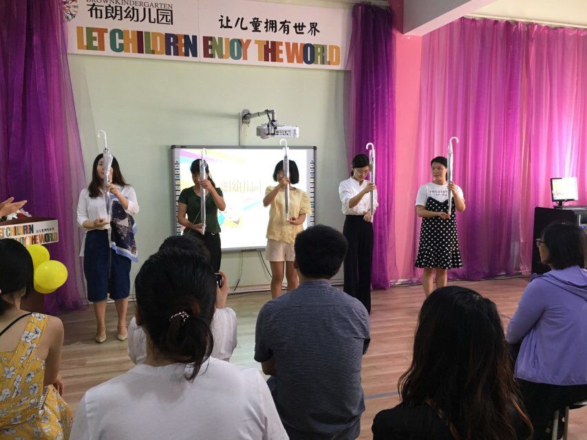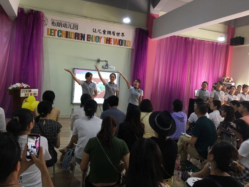 家长会分为教师亮相、暖场游戏、园长妈妈发言、茶歇、现场答疑等几个环节。首先,行政团队和新生班级教师风采亮相,展示了布朗幼儿园师资团队的激情与活力。