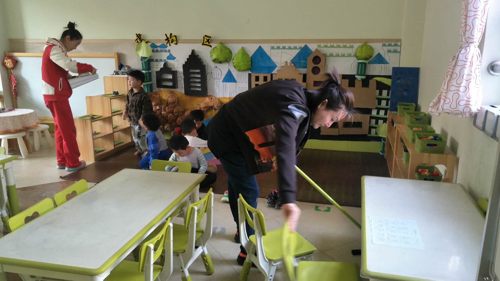 幼儿园活动中,保证环境、物品卫生的清洁、整洁是非常重要的,在布朗幼儿园中,除了每天常规的环境、桌面等卫生清理,更是细致到固定每日必须清洗、消毒的物品,比如周一是座椅、周二是桌面玩具、周三是蒙氏教具......瞧!我们的家长志愿者多么的投入,椅子边边角角都清洗消毒。