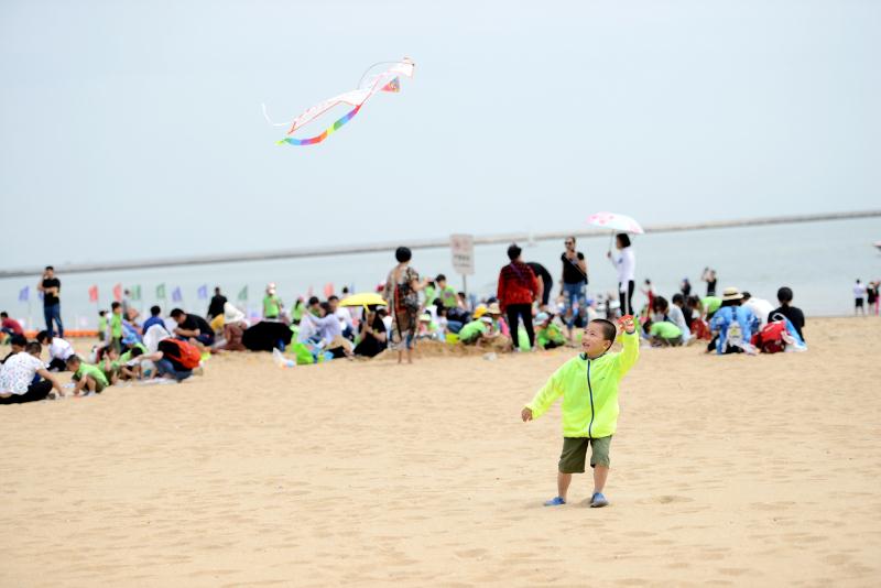 孩子们兴奋地举起画好的风筝,有的拉着线在沙滩上向前奔跑,托风筝的在后紧随。在欢呼叫喊声中,一只只美丽的风筝纷纷飞上了蔚蓝的天空;有的拿着自己亲手绘制的彩色风筝,自信地走上T台,迈着优雅的台步,展示着自己的成绩,与大家一同分享着溢满心田的幸福。