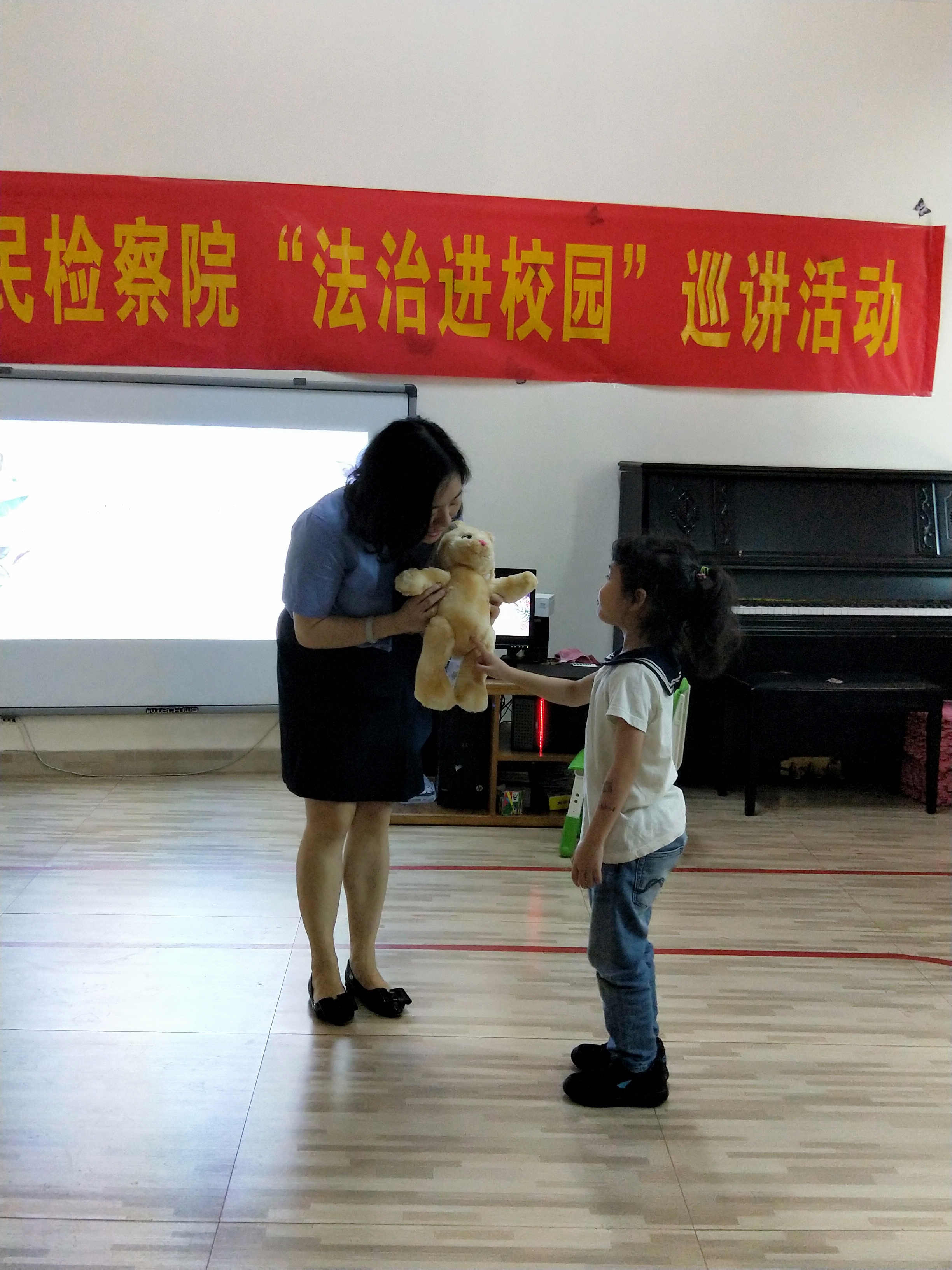 增强未成年人安全意识、法制观念和文明素质,有效提高广大幼儿的自我防护能力,预防和减少安全事故,是目前幼儿园安全教育不可或缺的一部分。安全教育从娃娃抓起,法治教育也要从娃娃抓起。感谢今天不辞辛苦来园讲课的检察官欢喜妈妈,谢谢您精彩的法治课堂,给孩子们带来了有意义的课外课,让孩子从小就学会作自己的保护天使,作自己的首席安全官!