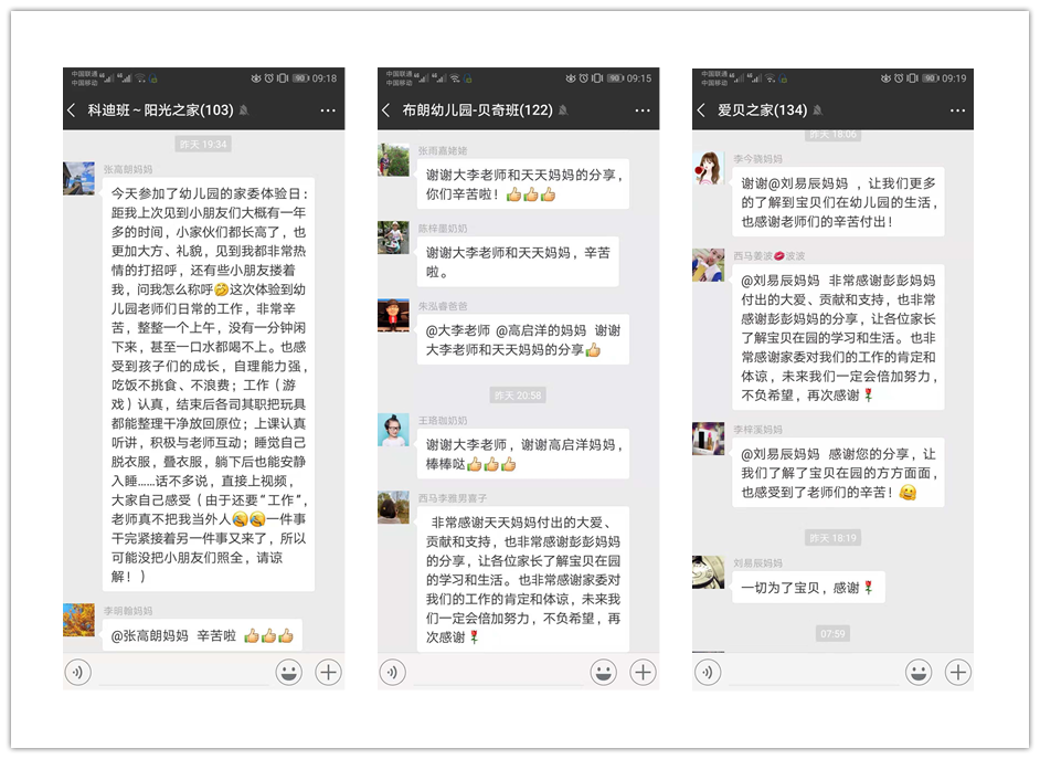 活动后,家委老师参加了幼儿园的教研会,和老师们一起探讨、学习和研究,走近老师的生活、工作和学习。家委们在分享环节不断地说:“老师们真是不容易,保育老师也非常辛苦。通过教研我们也深刻明白,幼儿园对孩子课程活动的安排,都是有一定教育意义的,而不是单纯地玩。”通过半日体验,家委们纷纷表示,今后会更加支持幼儿园工作,做好桥梁纽带作用。当然,布朗幼儿园的老师们也一定会倍加努力,为实现“让儿童拥有世界”的目标不断迈进!