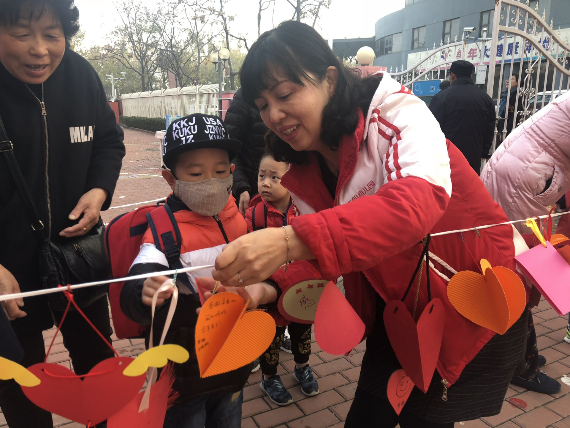 清晨的布朗幼儿园热闹非凡,爸爸妈妈们早早地就带着宝贝们来到幼儿园,他们要将自己亲手制作的感恩祝福卡系在幼儿园门前的祈福绳上!在这个特殊的日子里,他们要把对园长妈妈的爱、对保安叔叔的爱、对厨房叔叔阿姨的爱、对老师们的爱通过这种方式表达出来。