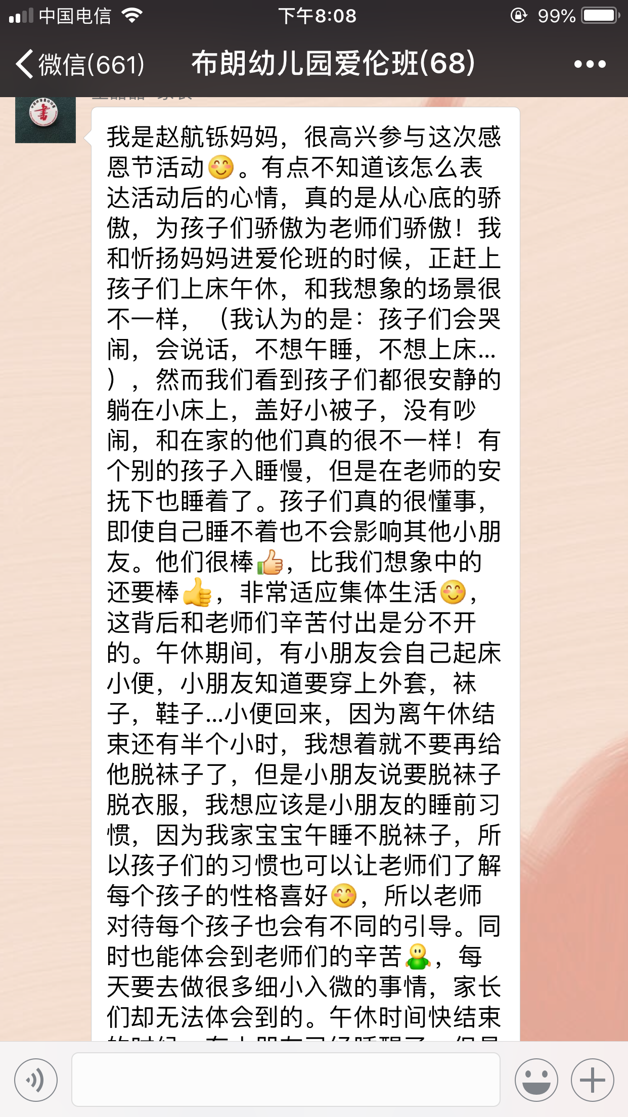 布朗幼儿园天津保利园在11月22日这天,用一种“特殊”的形式呈现一场不同的“感恩节”,邀请班级的家长朋友走进班里,体验成长,见证孩子的变化;家园共育,感受感恩的情怀。