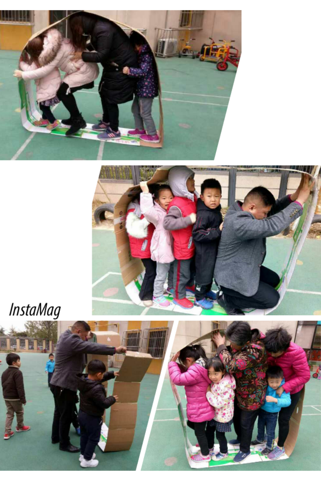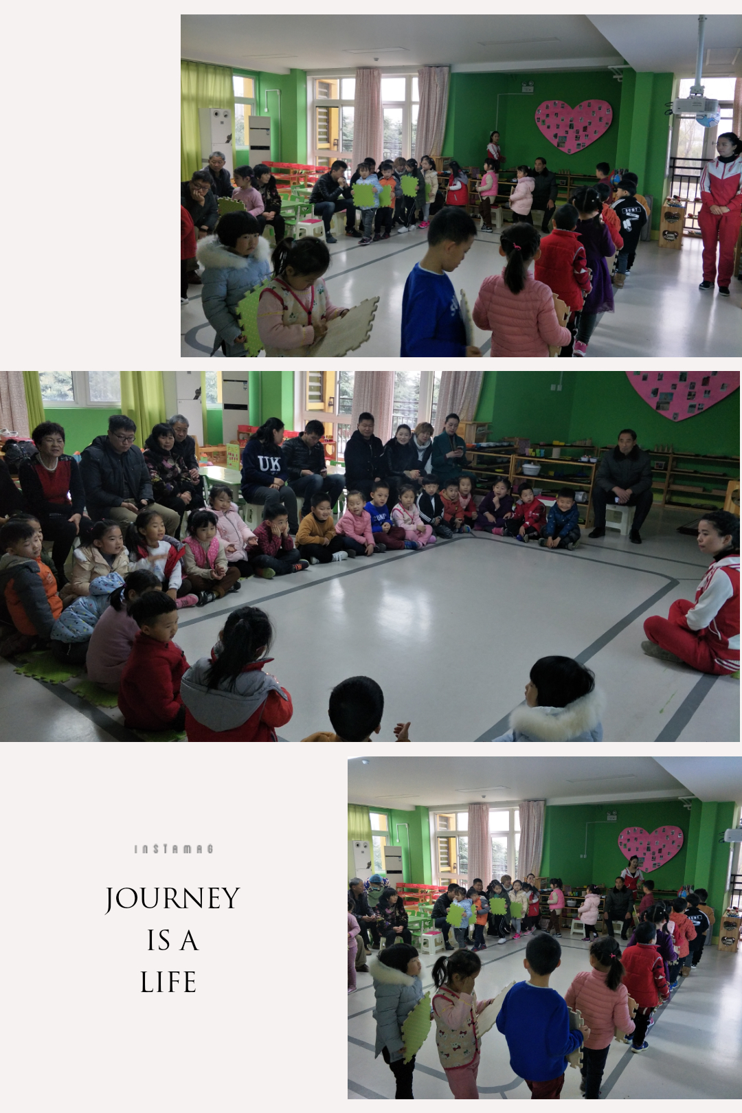 有了爸爸妈妈在一边的热切关注,孩子们比平时更为活跃,热情高涨,都要把自己最完美的表现献给爸爸妈妈们;爸爸妈妈们听到孩子们富有想象的回答,在窃窃私语中不断地透露着赞美之词。在游戏环节,家长受到孩子们的感染,跟着音乐节奏进入了游戏,有助威的、有加油的,玩得不亦乐,似乎也跟着孩子们回到了童年。
