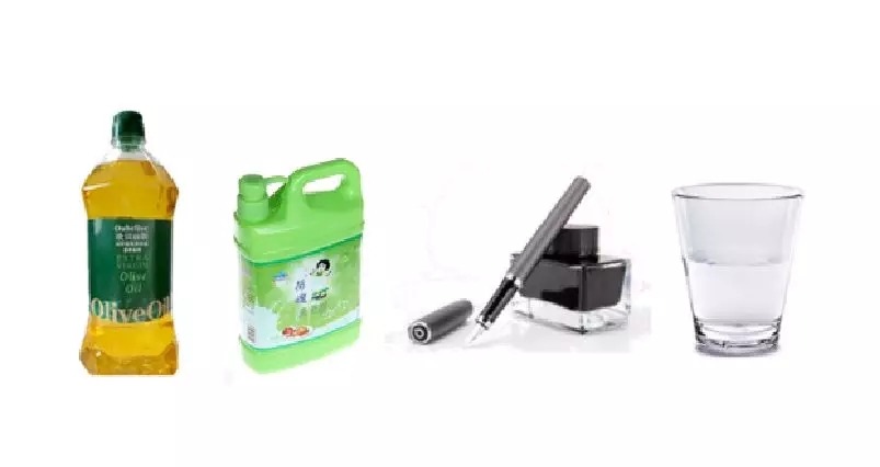 一、实验材料:食用油、一支钢笔或墨水、洗洁精、水杯、水。