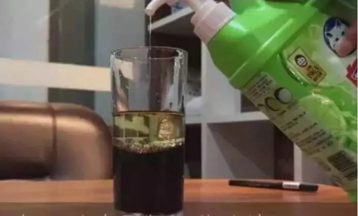 这是由于表面张力——水的属性,使得它能够抵御外界的力量。常见的洗洁精会使水的表面光张力下降,导致水在碗里带着胡椒粉一起向四周扩散。