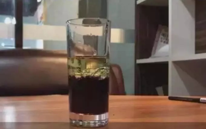第三步:请你仔细观察,看到了什么现象?食用油漂浮在水面上了。