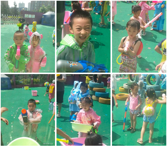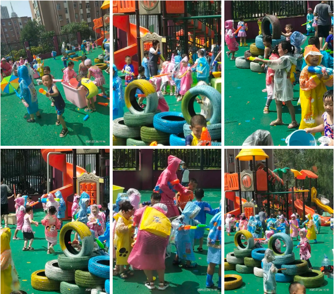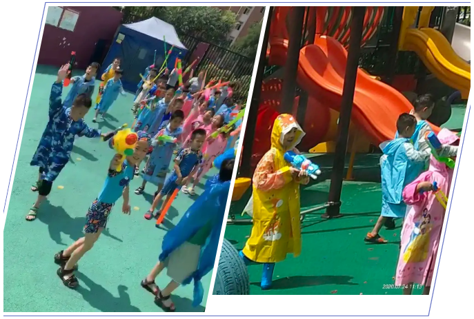 夏日的风,烈日的雨,天边的彩虹是心中的那一道亮丽,普通的水,纯真的你,孩子的快乐的源泉就在这里!看到五彩斑斓的色彩了吗?那是穿着雨衣、泳衣,手拿着各种水枪的孩子们!听到嘻嘻哈哈欢快的笑声了吗?那是孩子们“冲锋陷阵”“勇敢迎战”的勇敢之声。说了这么多,究竟是发生了什么事情?随着小编我们一起走进布朗幼儿园(大同魏都D园)来看一下吧!