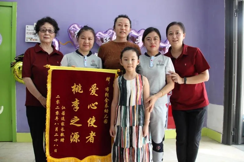 正如锦旗上的句子:“爱心使者,桃李之源”,“疼爱无微不至,关怀教导有方”。在今后的工作中,我们布朗金泰的每一位教师,一定会以此为契机,始终以“服务幼儿、服务家长”为宗旨,以双倍的努力、更加用心地去服务每一个家庭,以更优秀的成绩赢得每一个家长与社会的认可,为园所赢得更多的荣誉。