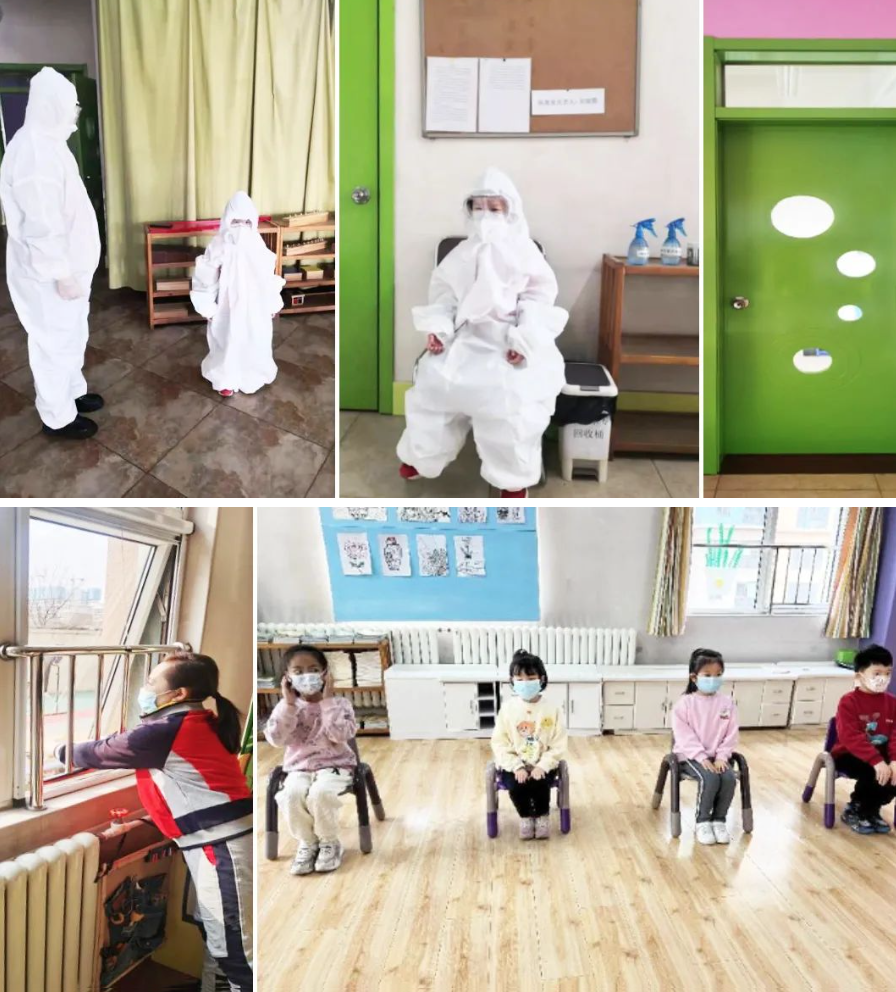 保健医第一时间穿戴好专业防护服等防护装备,并给次密接幼儿穿戴隔离服等防护装备,接着将次密接幼儿带领至隔离室中,并安抚幼儿情绪。