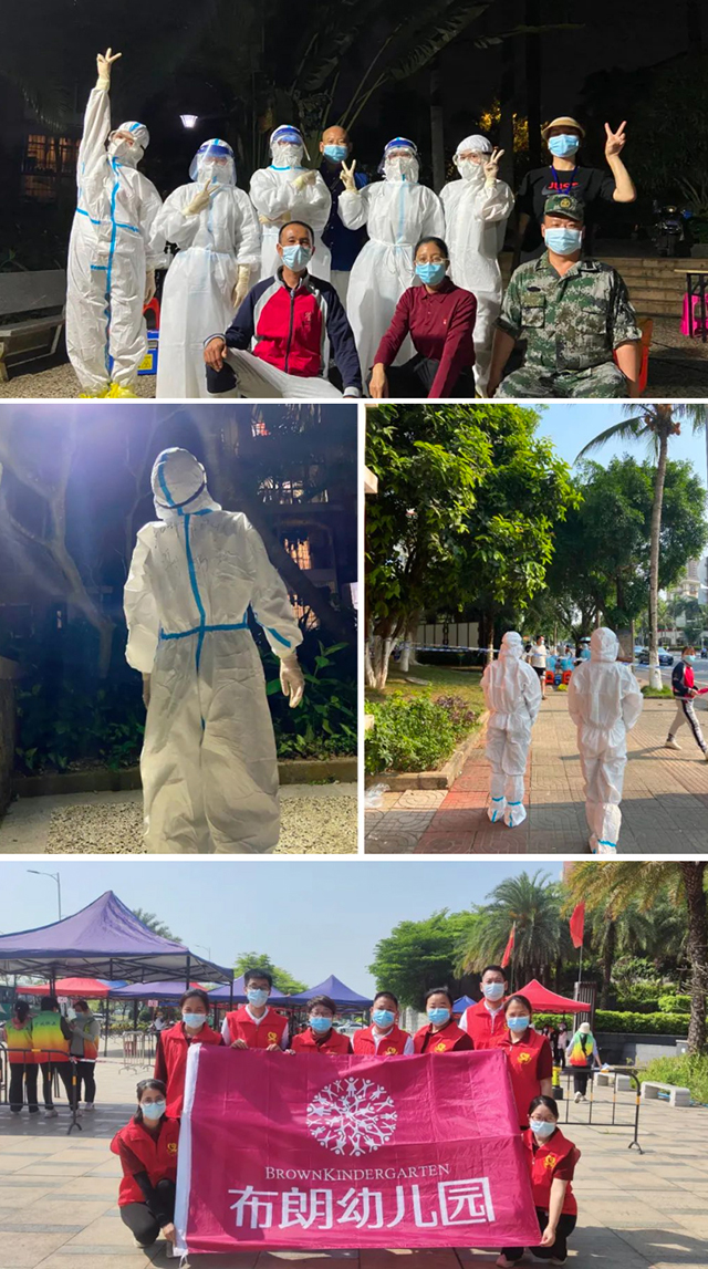 广州也受到这轮疫情波及,布朗幼儿园广州新康园老师们,也踊跃地参与到志愿者中,社区、街道、核酸检测点都有布朗老师志愿者的身影。老师们刚从繁忙的教育工作中走出,又在抗击疫情的“一线”上岗。老师们的无私奉献,义无反顾,彰显了教育工作者的大爱,以行动践行初心和使命,用真诚奉献诠释社会担当。