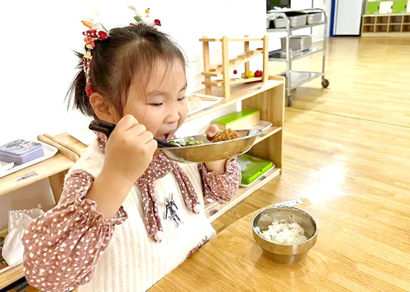 幼儿园的老师一般会鼓励孩子不剩菜剩饭。这个时候,如果孩子已经积食,那就一定要跟老师说:“老师,我不饿,我想少要一点。” 如果孩子饭量大,不够吃,那就要勇敢地跟老师说:“老师,我还想再要一点”。
