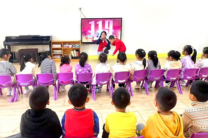 在日常教育教学中,各班组织形式多样的消防安全教育活动。老师们利用课件、视频、实物展示、动作讲解等形式,向幼儿详细讲解火灾中逃生、自救的正确方法。