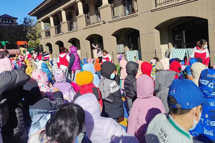 上午10点,幼儿园内突然响起了急促的警报声。听到警报声后,各班老师迅速作出反应,本着“安全第一”的原则,有序组织幼儿沿着安全出口快速撤离......消防疏散演练开始了!