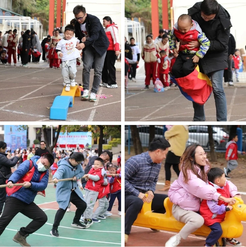 重头戏亲子游戏上场啦!充满趣味的游戏,立马抓住了家长和孩子们的眼球,点燃了彼此的热情。大家在游戏中体会快乐,在快乐中尽情的游戏。比赛环节一个接着一个,加油声、呐喊声、欢呼声成为整个运动场上的主旋律。孩子们和爸爸妈妈一起奋勇争先,努力拼搏。