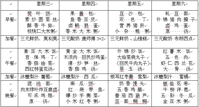 2014年10月8日—11日幼儿食谱——大同泰昌国际园