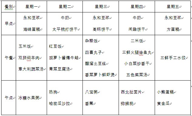 2014年9月22日—26日幼儿食谱——南京北江豪庭园