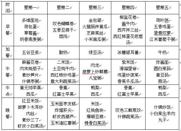 2014年9月1日—5日幼儿食谱——天津泰达园