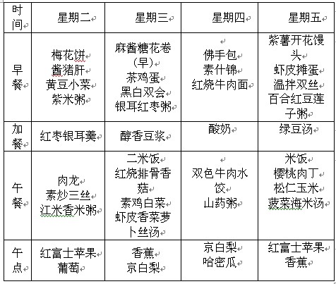 2014年9月9日—12日幼儿食谱——天津泰达园
