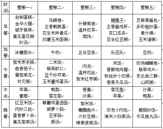 2014年9月15日—19日幼儿食谱——天津泰达园