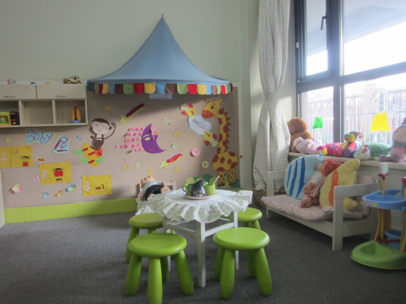 (教室生活区一角) (教室建构区一角)