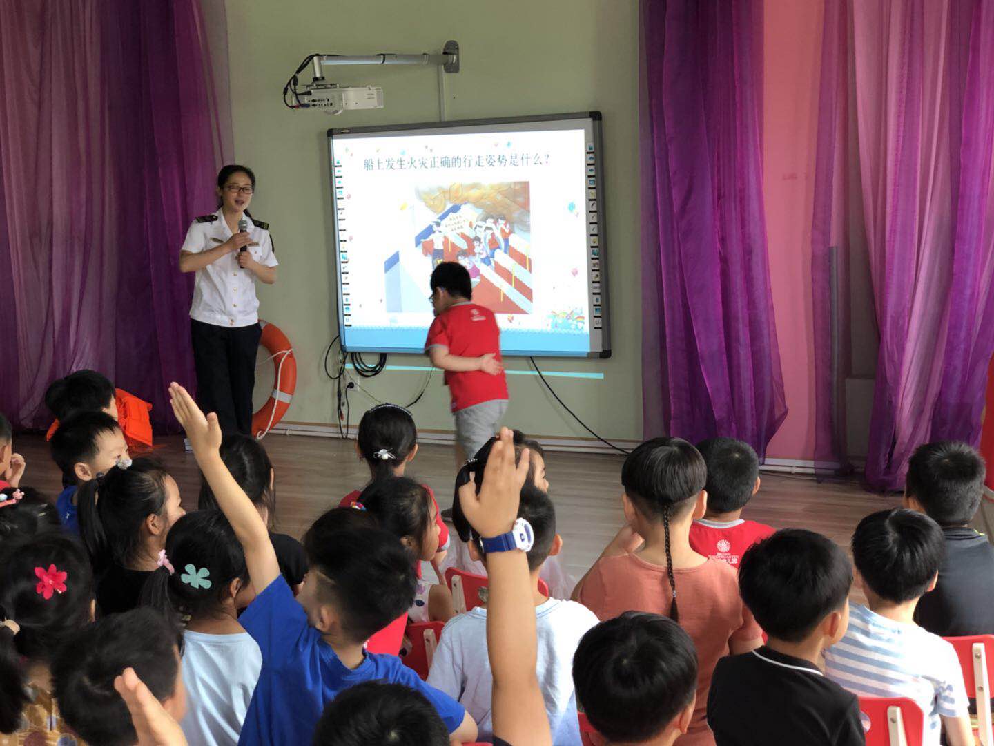 在船上也是会有意外产生的呦!授课老师继续给小朋友们讲解了水上交通工具可能存在的风险,并通过举例大家耳熟能详的“泰坦尼克号”海难事件,详细讲解了海上事故发生的原因、经过以及经验和教训,并向小朋友们讲授了在船上遇到落水、火灾等意外时应该采取的正确措施。小朋友们听得可入神了!