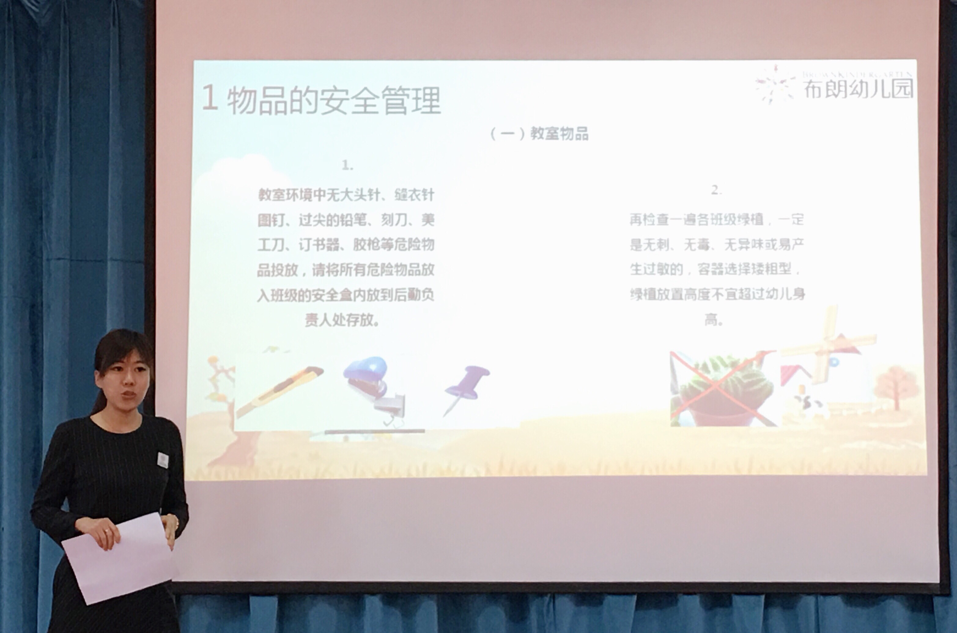 为认真贯彻落实布朗教育机构关于做好安全工作的重要指示精神,进一步加强幼儿园安全教育,提高全园教职工安全防范意识,近日,布朗天津泰达幼儿园对全园教职工进行了“安全十三项”的培训。