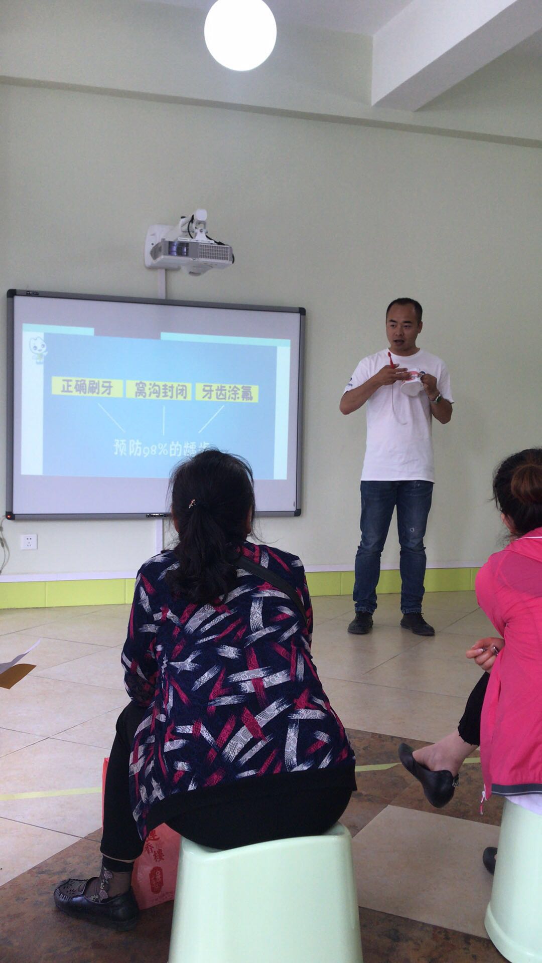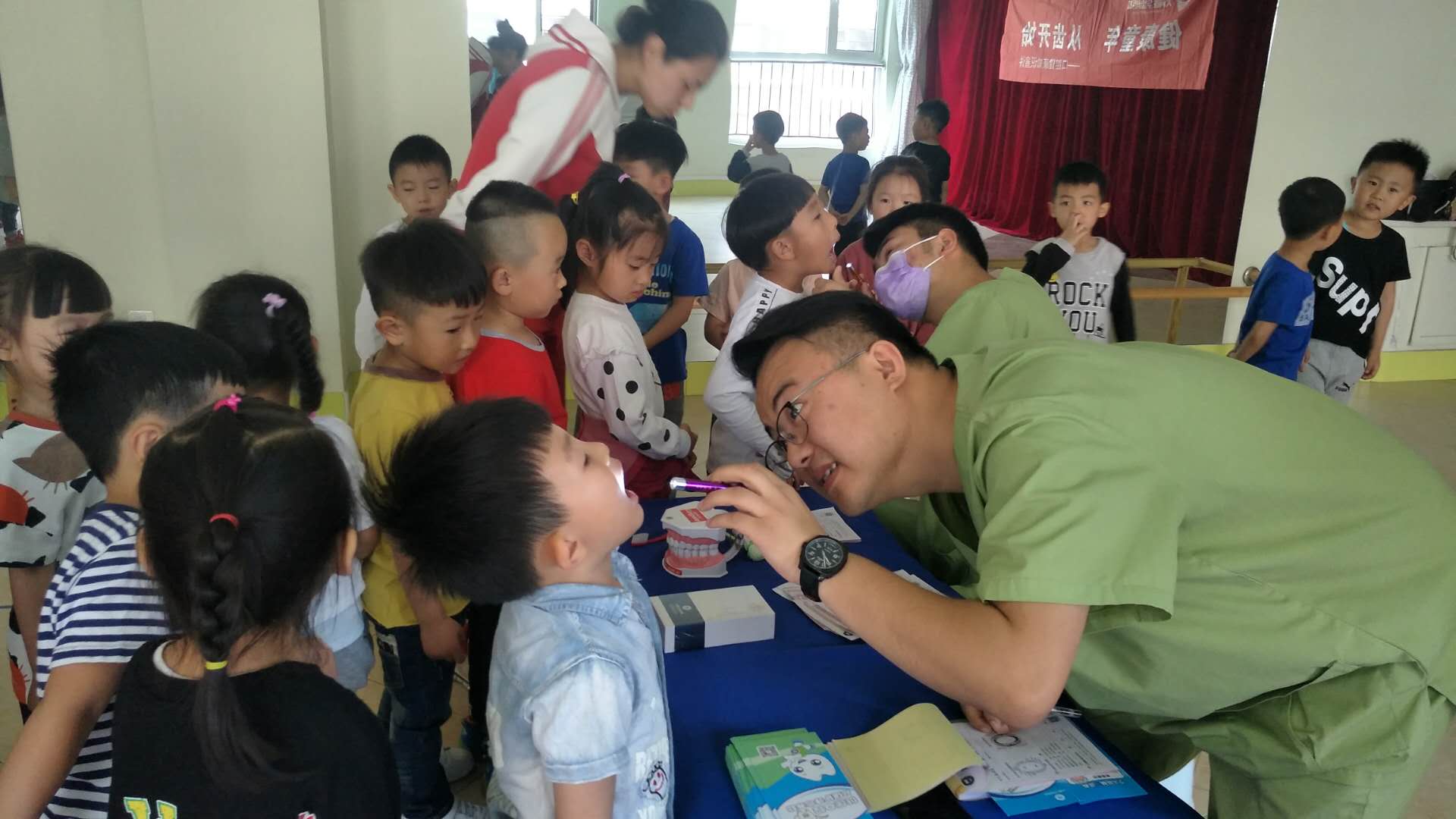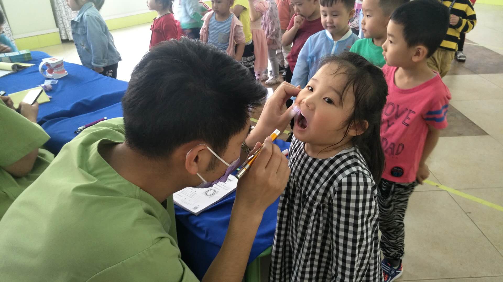 在这周,布朗幼儿园大同魏都D园里来了一群“护牙使者”,他们是来自于大同市医学齿科医院的叔叔阿姨们,肩负护牙使命,为小朋友公益检查牙齿,同时也为幼儿园的家长朋友及老师们带来护牙、爱牙的科学知识,真正全园实现——健康生活 从齿开始。