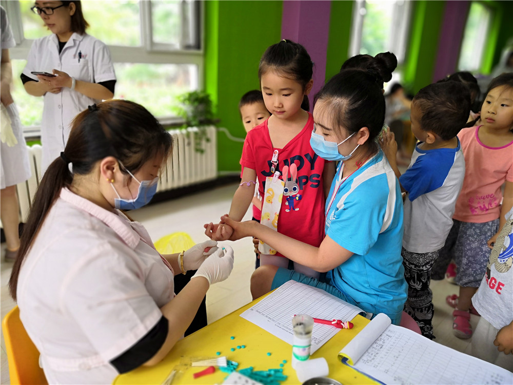 体检时,每一名医生都能认真、细致地给每一个孩子进行各项检查。值得一提的是,采指血的环节,大多数宝贝都表现得特别坚强,没有哭泣,因为孩子们知道自己长大了,要学会坚强和勇敢,懂得如何面对问题和解决问题。孩子们深深记得老师的那句话,这是长大的一种经历。老师和爸爸妈妈真的为你们骄傲和自豪!